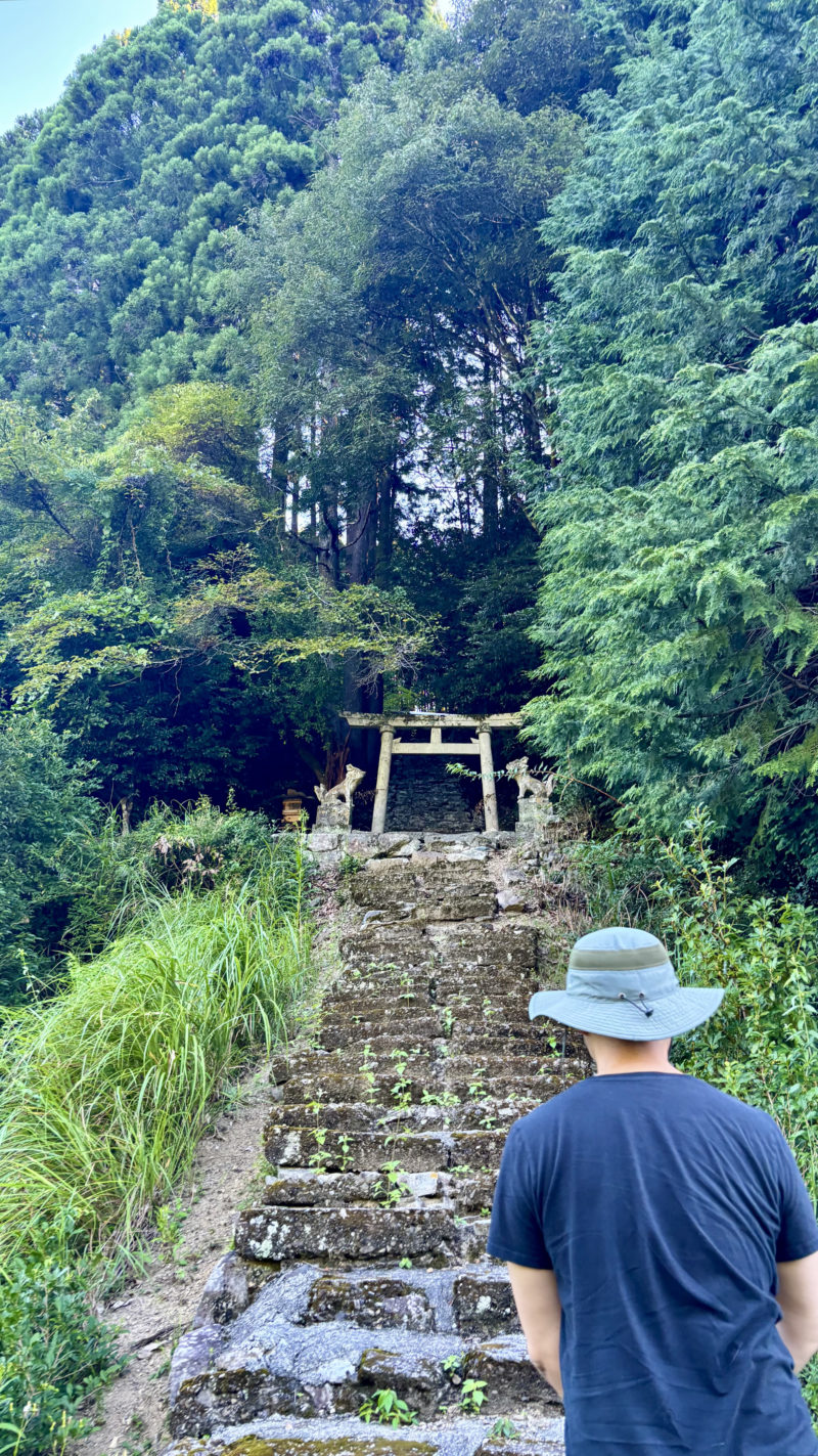 夫と並んで、家から数分の氏神様へ向かう。苔むした石段は二、三年前に氏子の方々が直してくださったものの、土が流れて再び崩れはじめていて、足元を見ていないと危険だ。ところどころはスロープのように傾斜がついて、石がぐらぐらと揺れているところもある。