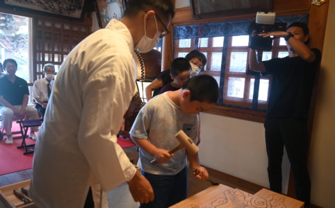 正午の夏の名残の日差しの中で、完成したばかりの不動明王立像を撮影した。 一本のカヤ(榧)から彫り出されたその姿は、憤怒の相を現しながらも、どこか慈愛に満ちた気配を漂わせている。 施主が望まれたのは、子どもたちを守る本尊と...