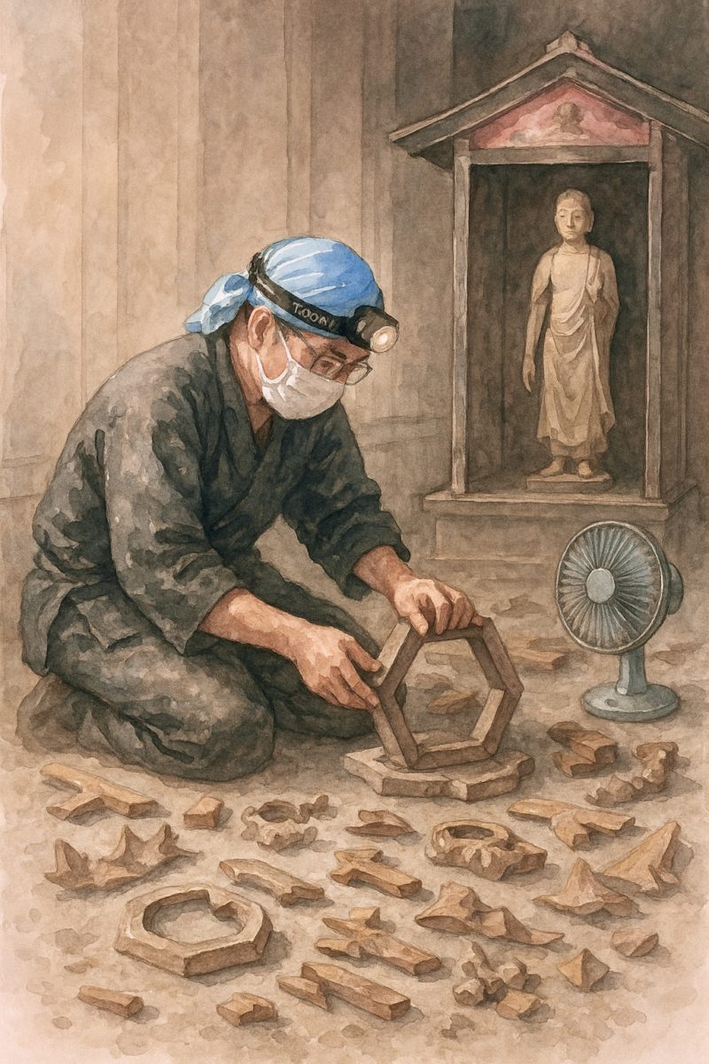 「一日でここまで…」 処置を終えた仏様を前に、ご住職がぽつりとつぶやかれた声には、ねぎらいと深い祈りが滲んでいた。