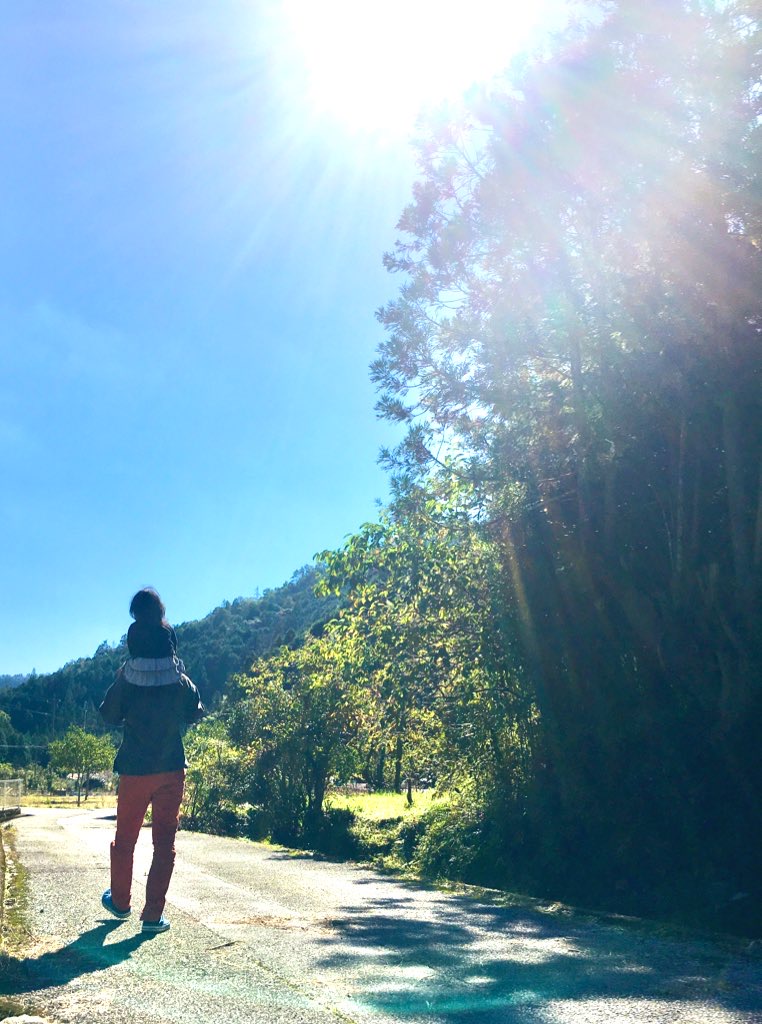 神様にご挨拶をして振り返ると、視界がすうっと開ける。眼下に広がるこの集落での暮らしは、あとどれほど続くのだろうか。娘は「ずっと住みたい」と言う。静かで気楽な環境だ。けれども一方で、「あと数年かな。動けるうちに街へ出ようかと思っている」と、話されるご近所さんもいる。