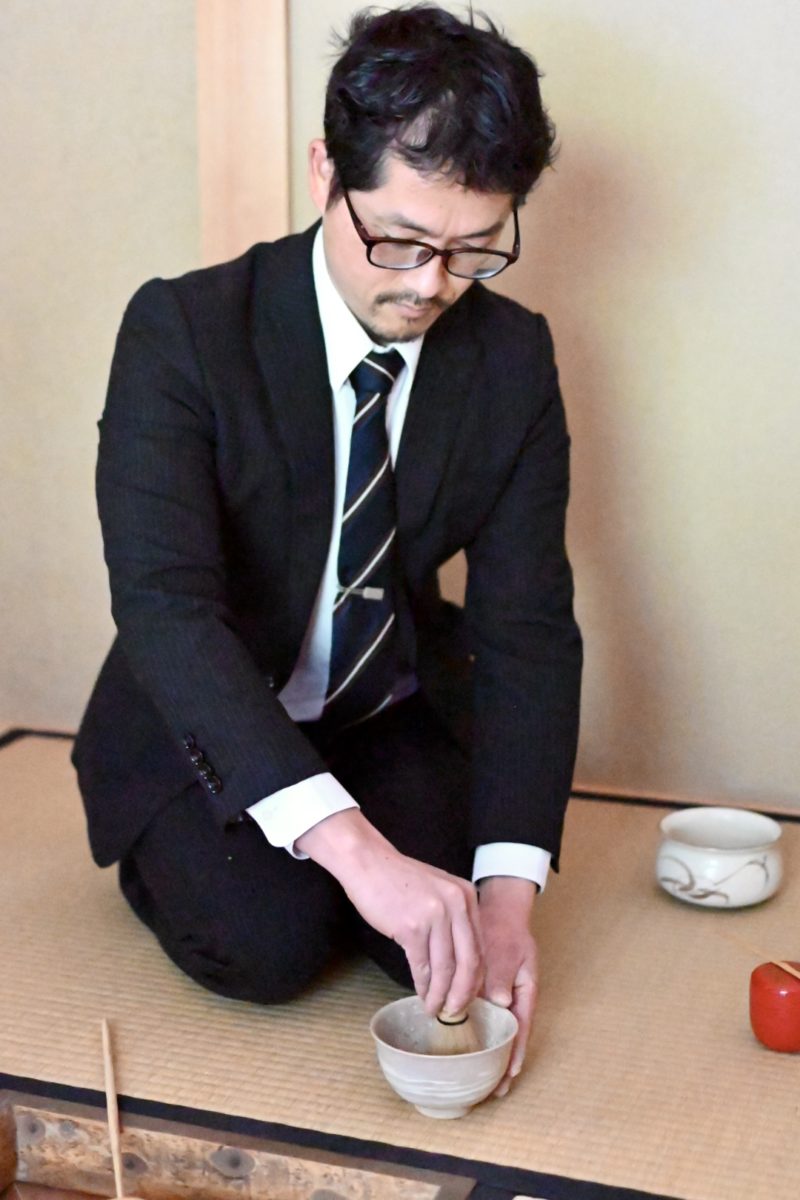 いつも驚きと尊敬の念をおぼえるのだが、師匠はたとえ別の弟子と話をしていても、点前で起こるほんの少しのずれも見逃されない。そこにいつも、特殊能力を見るような思いがする。