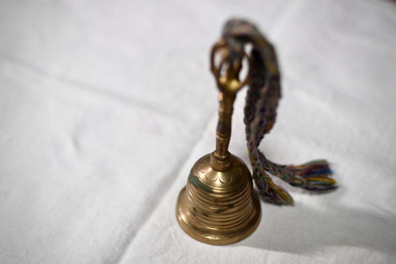 四国遍路をされた際、ずっと身につけておられたものだという。華やかな香りに満ちた本堂で、興味を示した私に、その鐘を振って鳴らしてみせてくださった。