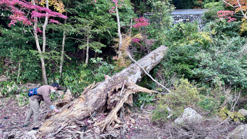 アイキャッチは、11月の能登のあるお寺の境内。吉田の背丈の何倍もある大木が、地震と洪水で倒れ、境内に留まったまま、静かに朽ちつつあった。