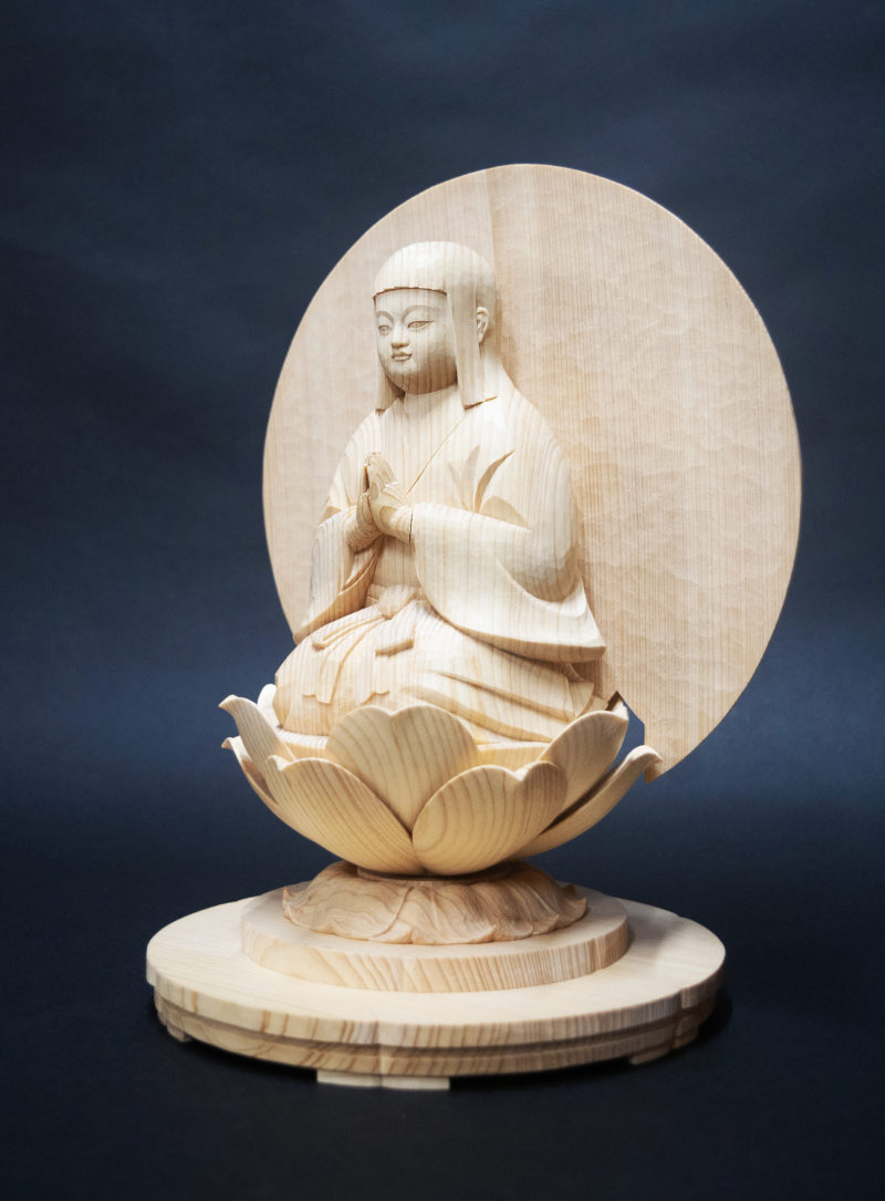 毎年、その年に製作した仏像を一つ選んで、印刷している。今回は、いくつかあり迷ったのだが、彩色と截金が鮮やかな「稚児大師」にした。