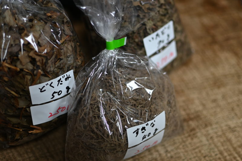 野草茶の種類もいくつかあり、友人知人が訪れると、まとめて買い求めていくことも多い。