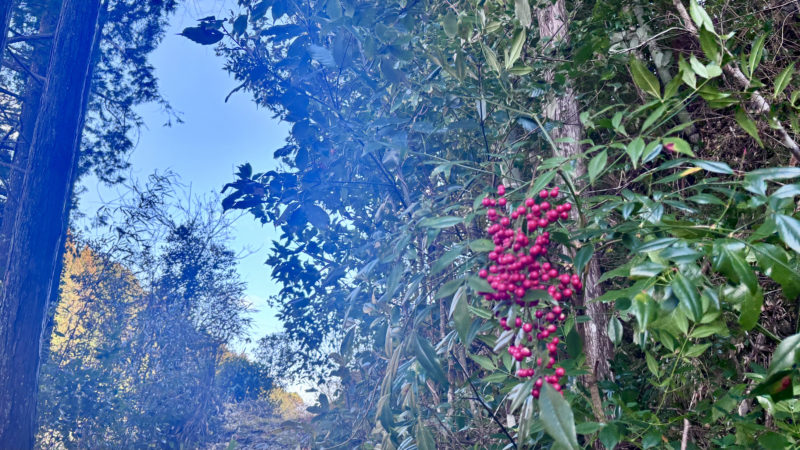 私は今、高知の山の中を歩きながら、このコラムをスマホに音声入力しながら書いている。同時に、雪の後の冷たい、少し湿った風が頬を撫でている。すぐ傍を流れる小川のせせらぎ、木々が揺れる音、土の匂い、鳥の声が聞こえる。ふと、南天の赤い実が目に入った。緑の葉に赤い丸い実。かわいい、と本能的に引きつけられる。