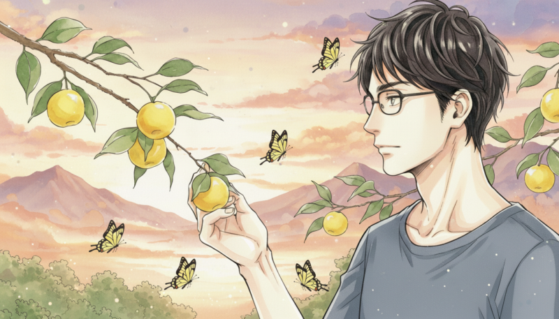蝉時雨を四方から浴びながら、目の前でひらひらと舞う蝶の影を追う。間もなく、この縁側も南国の日差しに晒されるだろう。立ち上がると、拳と膝裏から、汗が流れ落ちた。