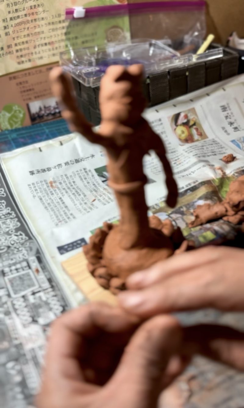 昨年の花祭り、娘は私の依頼を受け、粘土で誕生仏を造像した。それまでは、「仏影蔬(ぶつえいそ)」と呼ばれる「筍」を誕生仏に見立ててお祀りしていたが、いよいよ我が家にも誕生仏のお像がやってきた。